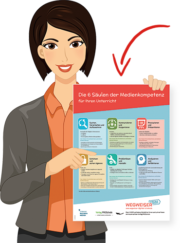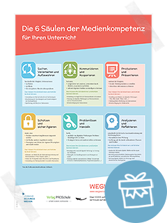 Hängen Sie es einfach gut sichtbar im Lehrerzimmer auf. So informieren Sie Ihr Kollegium leicht verständlich über alle 6 Säulen der Medienkompetenz.